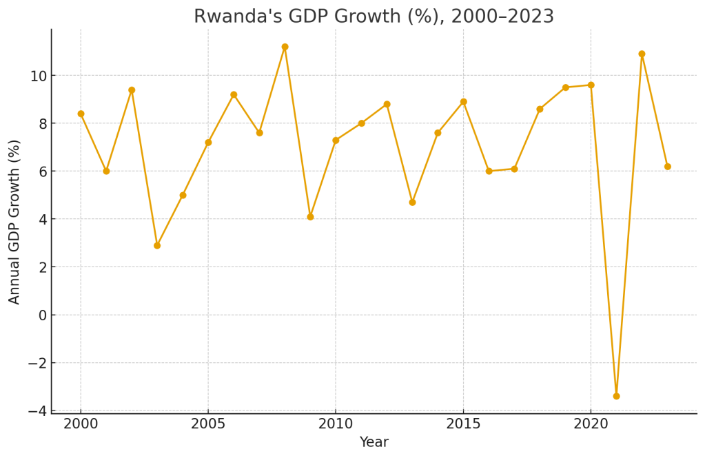 But the story didn’t end there. In the years that followed, Rwanda rebuilt itself through a combination of strong governance, forward-looking policy, and international partnerships. Since the early 2000s, Rwanda has consistently achieved growth rates of 7–8% per year, one of the fastest in Africa.